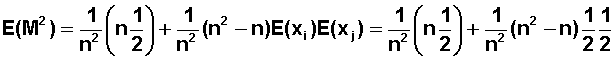 Car l'EM d'un produit de deux VA indépendantes (ce qui est le cas ici, car pour le produit croisé i est différent de j ) est égal au produit des EM des deux VA. On obtient donc :