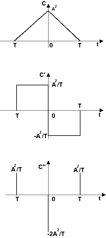 Pour faire ce calcul utilisons les propriétés de la TF en dérivant deux fois la fonction de corrélation, ce qui donne :